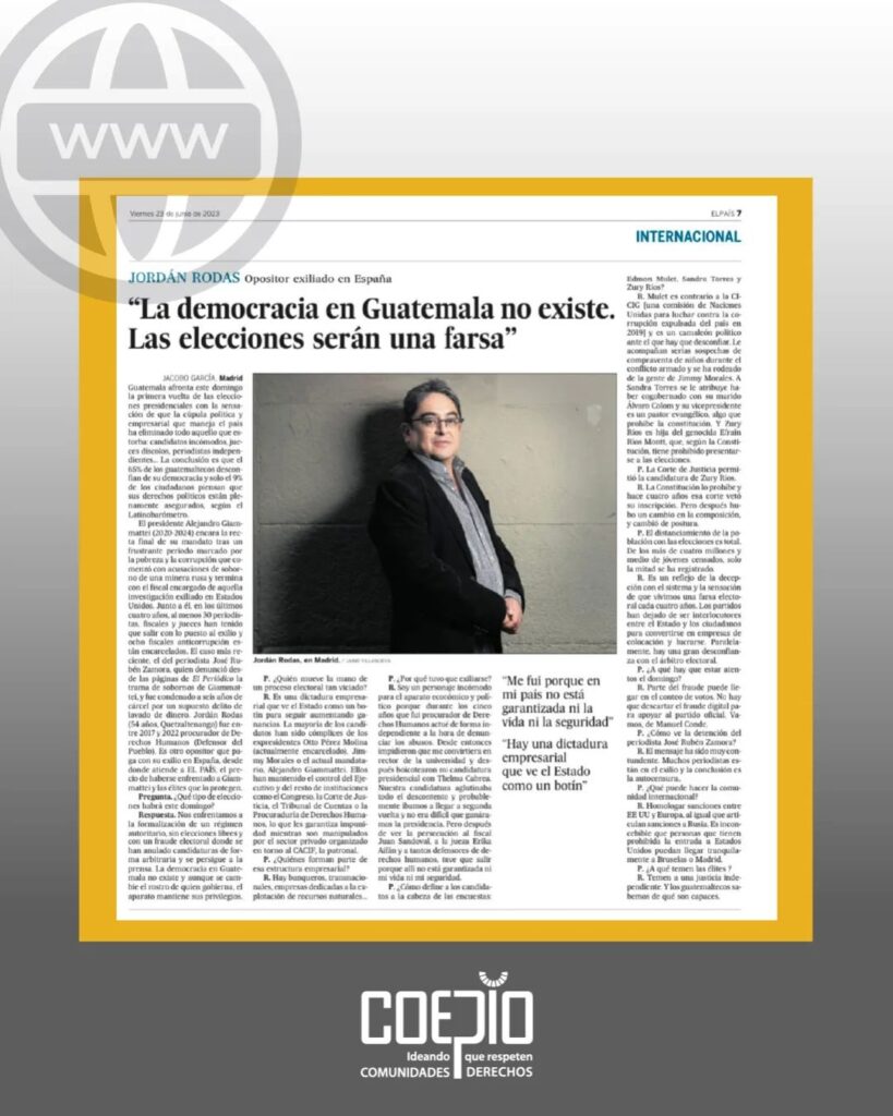 Nota completa ?? https://elpais.com/internacional/2023-06-23/jordan-rodas-opositor-de-guatemala-exiliado-en-espana-las-elecciones-seran-una-farsa.html