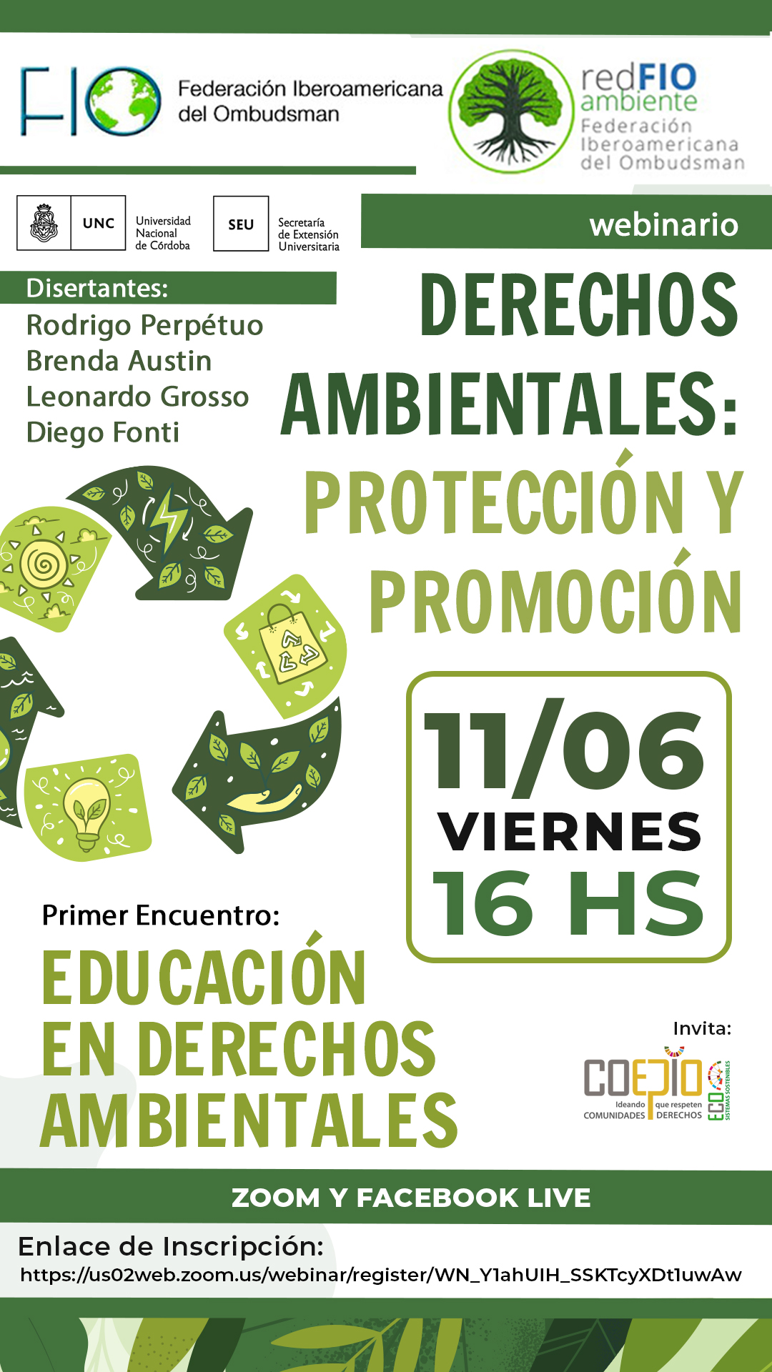 En este marco llevaremos a cabo un Ciclo de webinarios en los cuales se aborden de manera central los siguientes temas: Educación ambiental, formación en derechos ambientales de funcionarios públicos y agentes del Estado, su importancia y necesidad, avances en la protección de los derechos de la Naturaleza y la implementación del Acuerdo Regional sobre el Acceso a la Información, la Participación Pública y el Acceso a la Justicia en Asuntos Ambientales en América Latina y el Caribe.